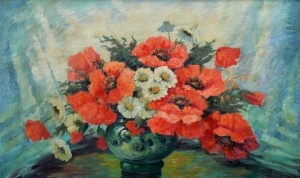Magaritten und Mohn Öl/Lwd., 60 x 101 cm Sign. r. u.: ERogge Privatbesitz |
